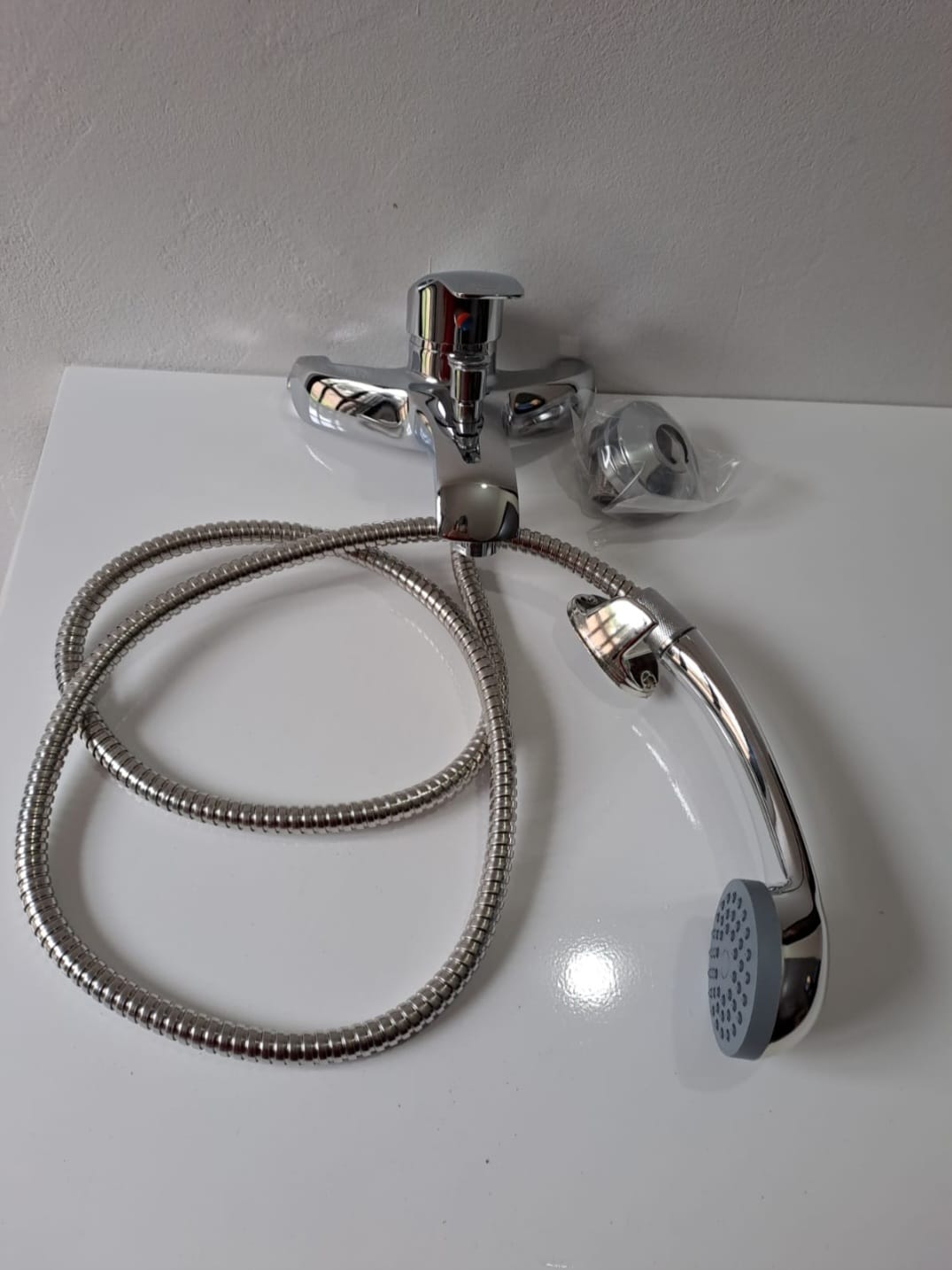 Griferia de ducha monocomando, flexible largo de 1.50 metros.